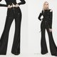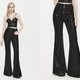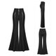 - Fitted flare pants that perfectly sculpt your leg line. Comfortable stretch faux leather fabric is spliced on both sides at the front. High-waisted design. Curved pocket openings with skull button embellishments on both sides. Front center exposed zipper with a custom "punkrave" crescent moon charm pendant. Tight and comfortable stretch knit fabric. Soft and comfortable stretch faux leather.