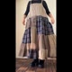 This one-of-a-kind jumper dress combines beige and navy plaid patchwork with a softly flared tiered silhouette. Sheer fabric accents add a light and feminine touch. Adjustable shoulder straps allow for layering and versatile styling. A perfect choice for those who value sustainable fashion.