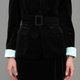 Our Fitted Velvet Blazer features a mandarin collar with Tang buttons, contrast cuffs, padded shoulders and a belt for the ultimate structured silhouette. Crafted from luxurious black velvet, the style options for the jacket is endless. Perfect for both formal and casual settings, this piece will effortlessly elevate any outfit.