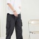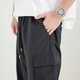 - Nylon Cargo Pants with Elastic Waist / Black Breathable and comfortable, suitable for autumn and winter.