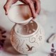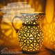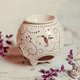 Our ceramic wax warmers are lightweight and are made from high-quality white clay with hand-carved cutouts that disperse the candlelight in unique patterns on your walls and surfaces! The white/ivory color will look great with any style of home decor and is standard for all of our lanterns as it produces the best results to highlight the carvings.