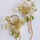 Two types of chains hang, each adorned with three tiny cubic zirconia. Two points of light sway, like fairies. It's truly enchanting.