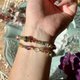 🛀🏻 The most frequently asked question about bathing: Crystals themselves are not affected by water. Brass oxidizes and darkens more easily with prolonged exposure to moisture. Elastic cords can also lose their elasticity over time with water exposure. However, for clasp styles, which are harder to remove, testing showed that wearing them for 3 months without removal only resulted in slight darkening of the brass. It is best to avoid contact with brushes and cleaning agents during showers. If you don't mind the brass darkening slightly, it is acceptable to wear them while bathing!