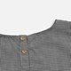 The back features a placket with wooden buttons and a black and white fine plaid fabric – a perfect match!