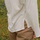 - Crafted from 100% pure cotton, this fabric offers a soft touch and allows for effortless movement. The minimalist neckline presents a clean silhouette, while the curved hem adds a touch of style. Its relaxed, raglan-sleeve fit is designed to flatter all body types, and the side slits provide an extra detail that elevates the overall look. Available in Pure white and Shallow rice.