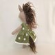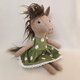 Horse girl plush toy, height - 32 cm (13 inches), beige wool tweed, brown artificial fur, non - allergenic synthetic stuffing. Green cotton dress with chamomile and wool cardigan. Embroidered eyes and nose. All clothing is removable. If you want other clothing - contact me.